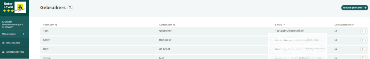 Klik ook op “Nieuwe gebruiker” om een al bestaande gebruiker van het BLkportaal bij het actieve bedrijf toe te voegen.